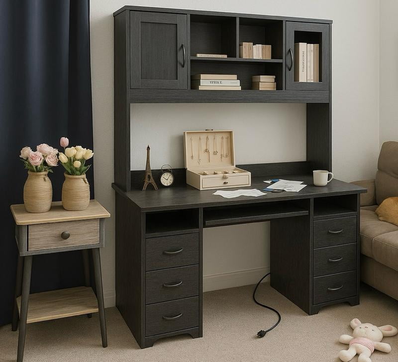 It took days to clear off and remove my old table, move the filing cabinet and computers, and build the desk and hutch.