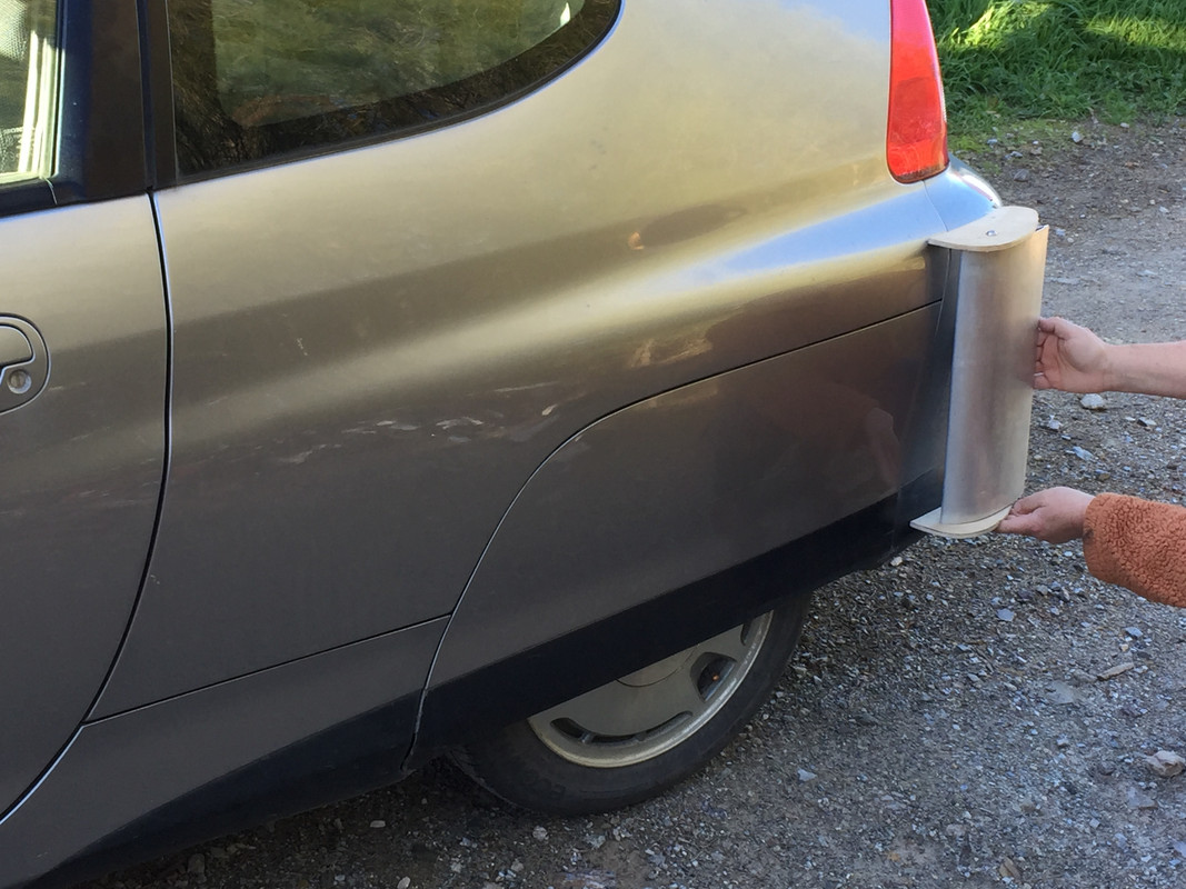 The eroding clay was used on only one side of the car and the car was driven in lots of different directions on a day where there were gusty winds.