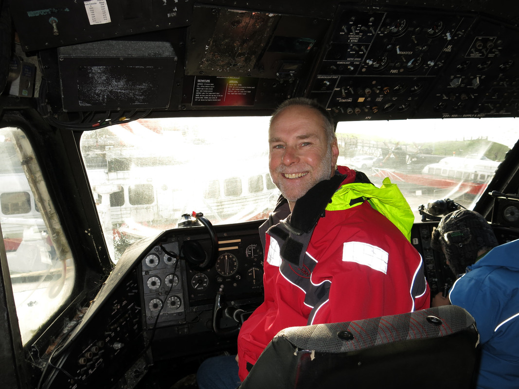 I am sitting in the pilot's seat of the biggest passenger hovercraft ever. A huge passion of mine.